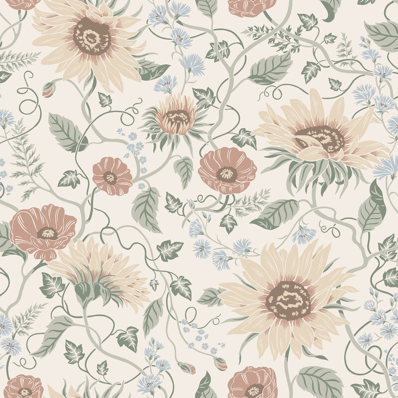 "Solens och vindarnas ö" är ett välkänt talesätt för Öland. Ändå vill vi uppmärksamma och värna om solrosorna, vallmo och cikoria som kallar denna stora blomsterbonanza för sitt hem. Solveig, Colorful, har en mjukt ljus bas som pryds av dämpade röda, beige och blå blommor med gröna bladverk.